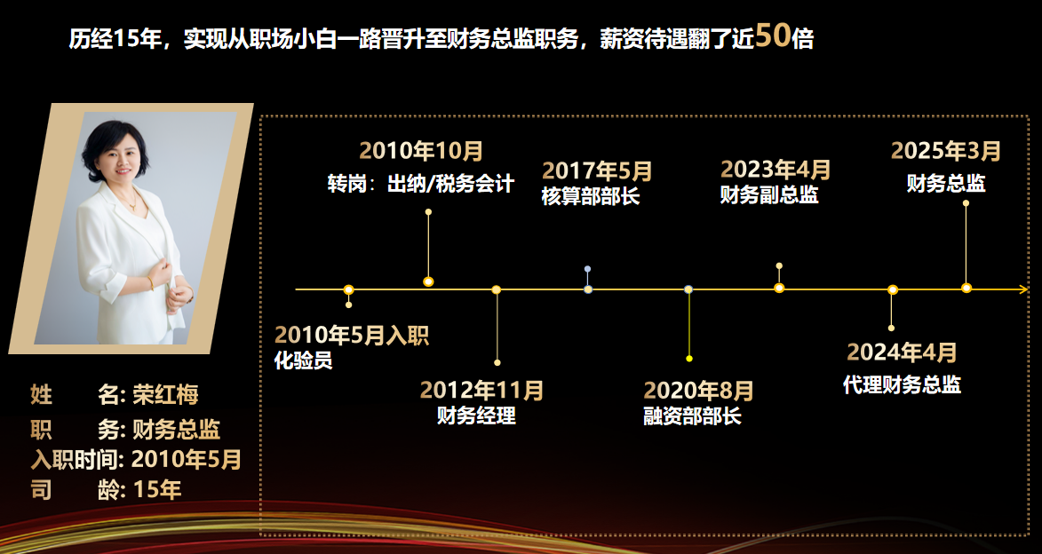 因心中懷揣職業夢想,她在財務領域持續奮進,從基層逐步晉升至財務總監,職業歷程成果豐碩。