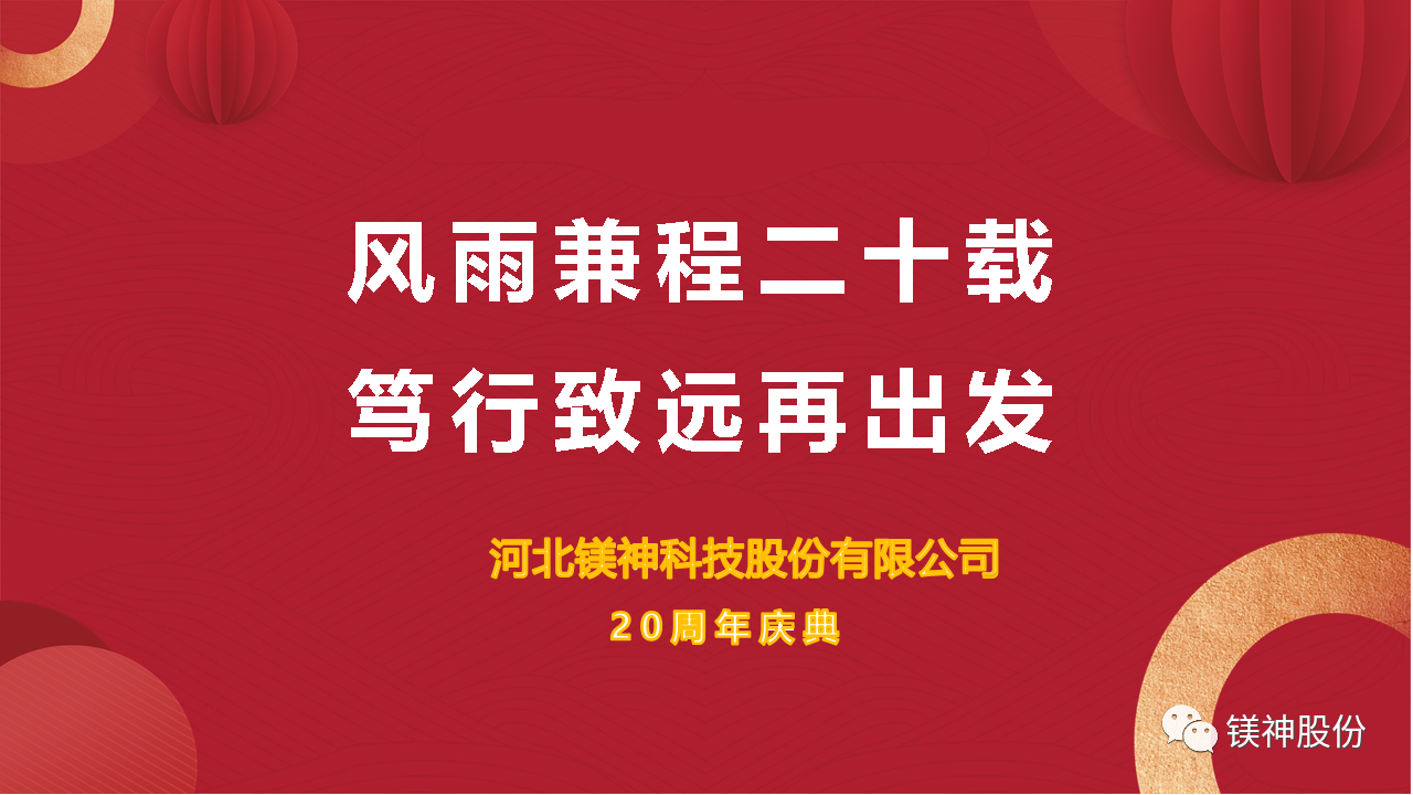 河北鎂神科技股份有限公司(以下簡稱“鎂神科技”)將于近期舉辦20周年慶典暨大客戶交流活動(dòng)。此次活動(dòng)以“合作共贏攜手未來”為主題,旨在感謝各位合作伙伴多年來的支持與信任,共同探討未來的合作發(fā)展。