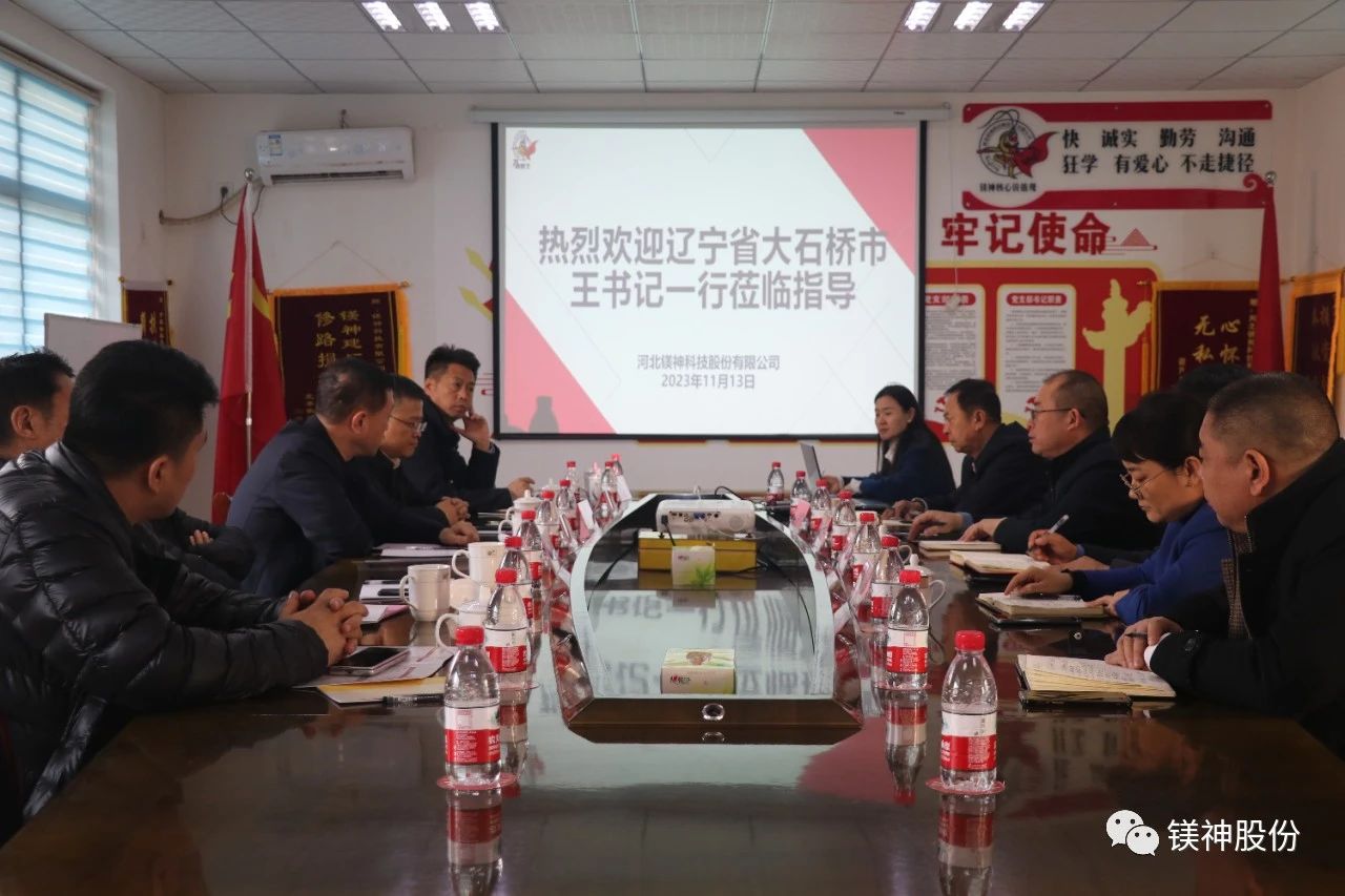 11月13日,遼寧省大石橋市市委書記王殿豐一行蒞臨河北鎂神科技股份有限公司(以下簡稱“鎂神科技”),鎂神科技董事長孫文帶領公司高管熱情接待,并陪同參觀了榮譽室、研發中心、生產車間和倉庫。此次交流旨在加強兩地企業間的合作,推動產業發展和技術創新。