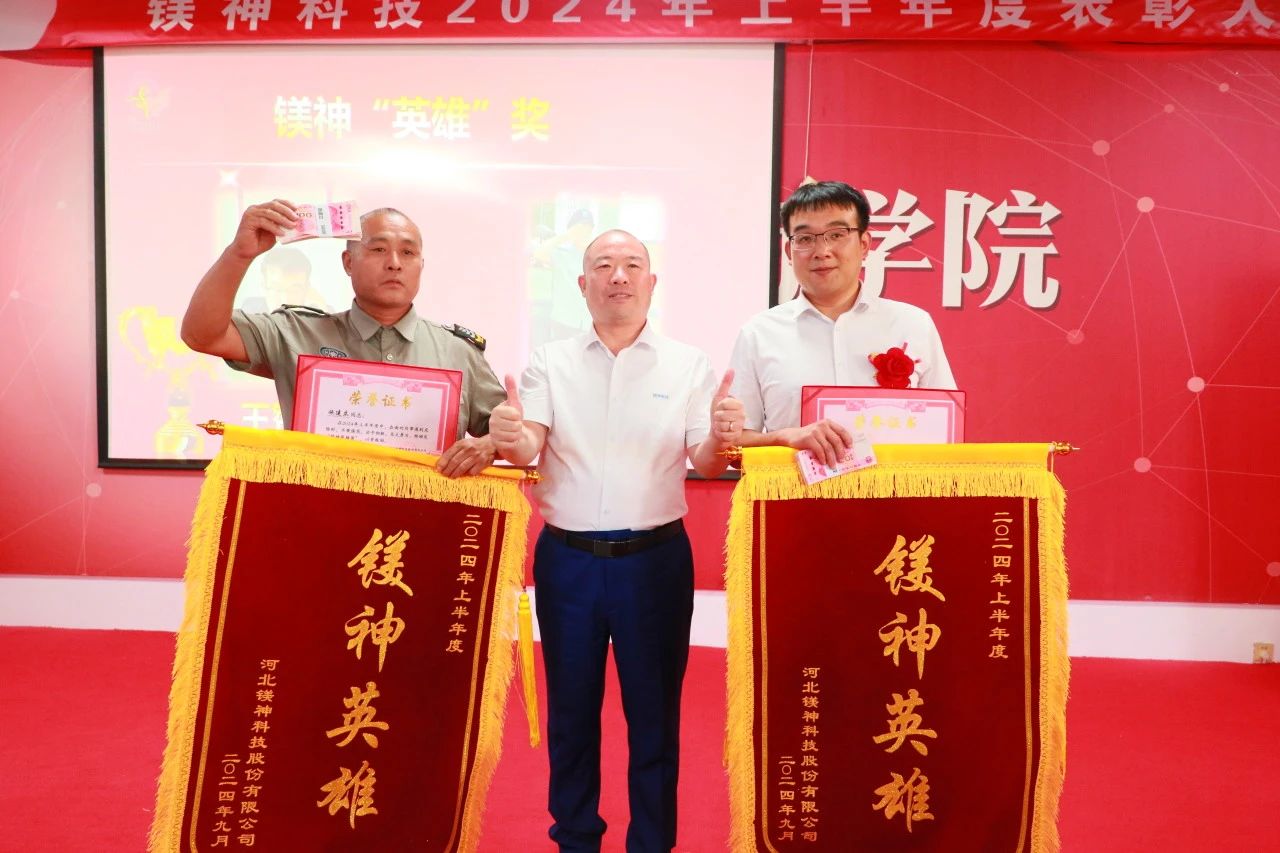 04鎂神“英雄獎(jiǎng)”樹立榜樣、宣傳榜樣、學(xué)習(xí)榜樣。鎂神需要這樣的“英雄”榜樣,鎂神不會(huì)讓“英雄”吃虧。讓我們?yōu)樗麄兊恼芰奎c(diǎn)贊!本次表彰大會(huì)中,特別設(shè)置了“鎂神英雄獎(jiǎng)”,授予在公司關(guān)鍵時(shí)刻挺身而出、做出特殊貢獻(xiàn)的員工——王贊旺、施建立!