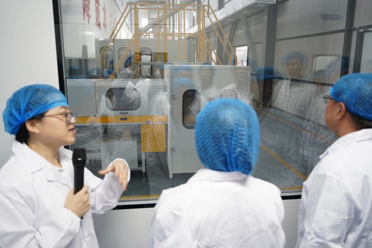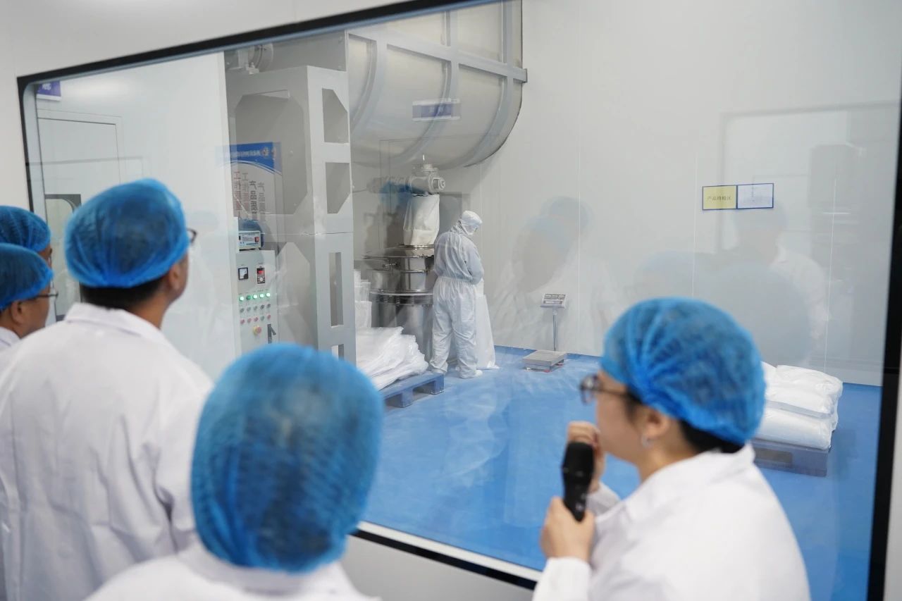 嘉賓們首先來到鎂神科技食品氧化鎂二期車間,這是此次項目的核心區域。車間內的全自動四列雙層電加熱輥道窯生產線,是國內首條結合動靜生產的高效生產線,具備精準的溫控系統,溫度誤差控制在±2℃以內,有效保證了產品的高穩定性和潔凈度。現場技術人員向嘉賓詳細介紹了生產線的先進工藝和操作流程,展示了鎂神科技在食品級氧化鎂生產領域的技術創新與領先優勢。接下來進入潔凈區后,嘉賓們進一步感受到鎂神科技在產品品質保障方面的嚴謹態度。食品二期項目中面積達5000平方米的十萬級潔凈區達到了國際食品安全標準,嚴格控制生產環境中的微生物和異物,確保產品的純凈度。通過高標準的生產環境,鎂神科技不僅滿足了國內外客戶對食品安全的嚴格要求,還為開拓全球市場提供了堅實的質量保障。