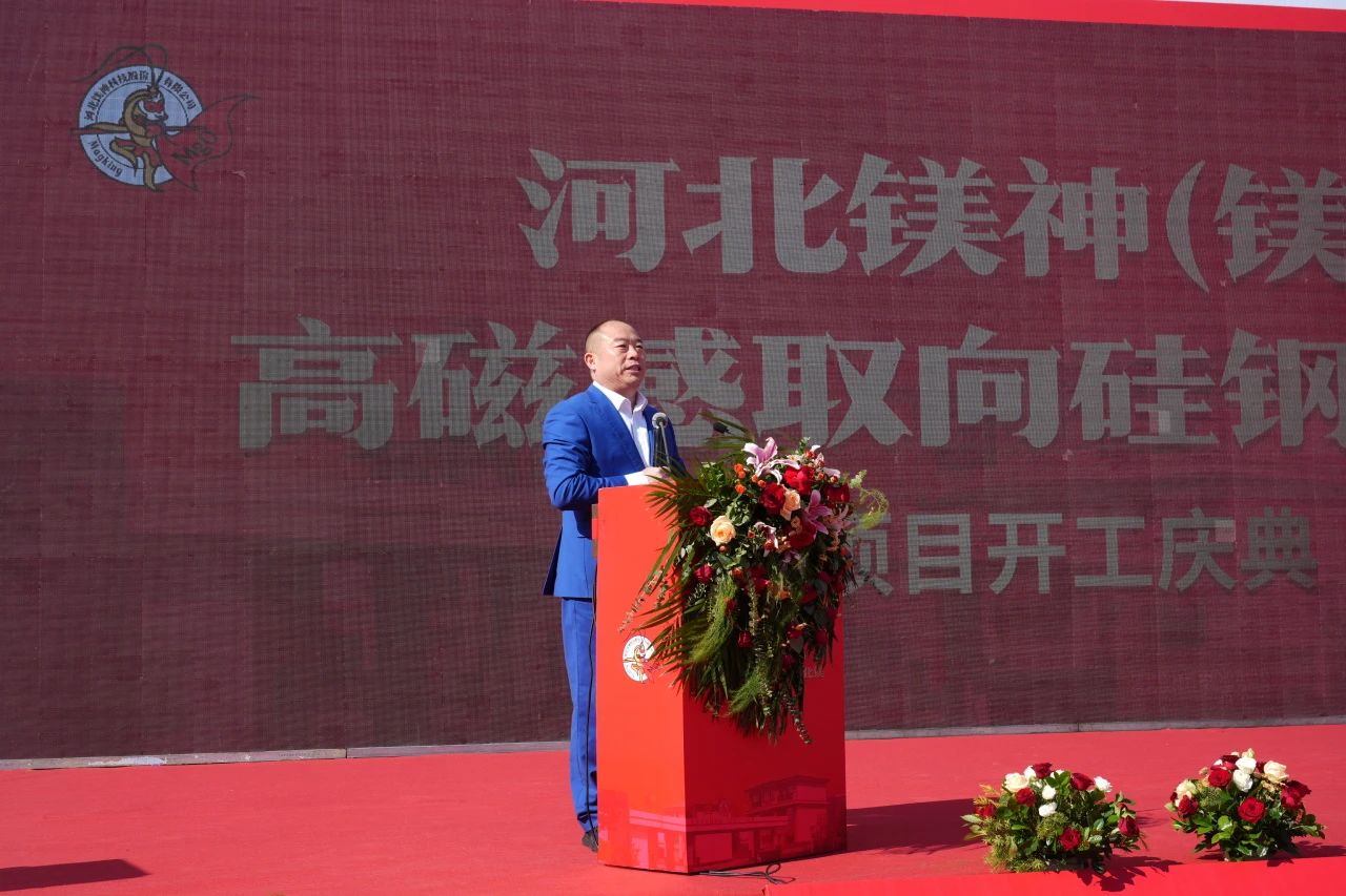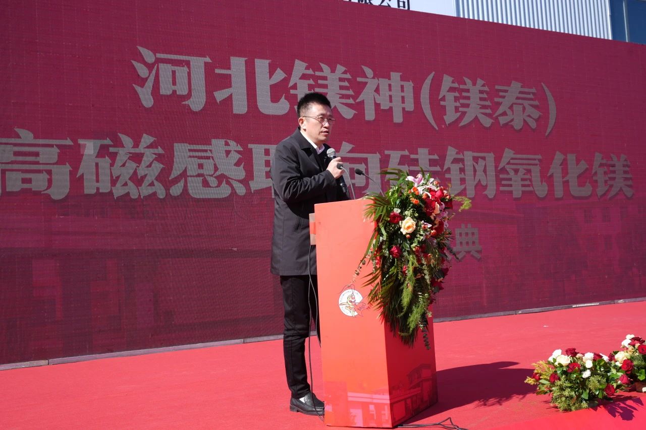 孫文董事長首先對遠道而來的各位領導、專家、合作伙伴和朋友們表示由衷的感謝。他提到,這一項目的順利啟動,離不開社會各界長期以來對鎂神科技的支持與厚愛。在致辭中,他回顧了公司21年來通過專注于氧化鎂行業的深耕與應用研發,從傳統氧化鎂產品逐步向高端化、精細化轉型升級的發展歷程。并分享了自己站在中國鎂鹽行業的前沿對硅鋼氧化鎂的見解。最后,孫文董事長再次對與會嘉賓的支持表示感謝!并堅信在鎂神的戰友們共同努力下,未來10年一定能實現世界級鎂質新材料定制專家,世界級應用研發領跑者,全球鎂資源整合者,世界級隱形冠軍締造者的戰略目標。為中國一帶一路添彩,為中國制造爭光,為民族復興增磚添瓦,為中國鎂行業發展貢獻我們的一份力量。