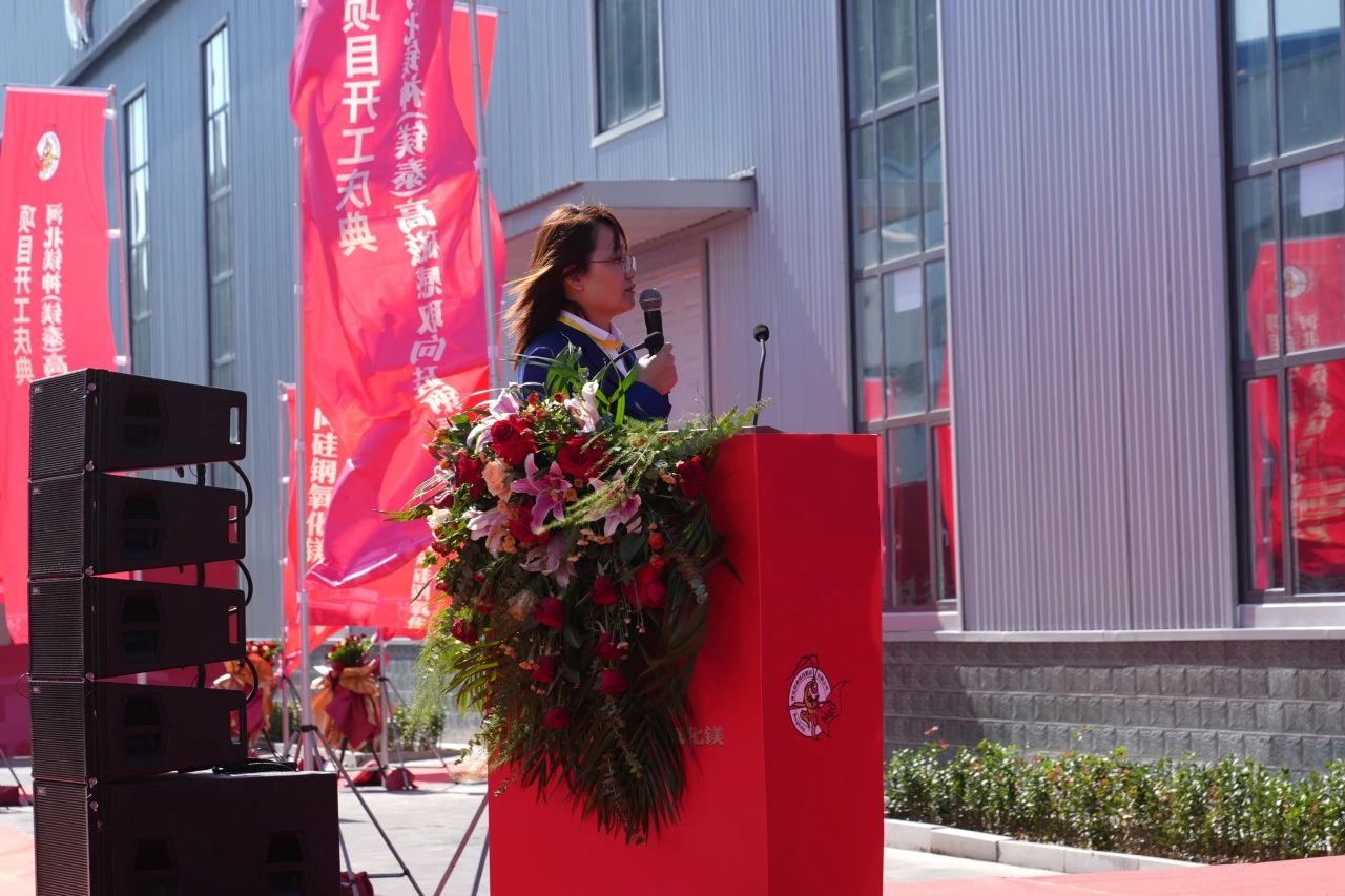 隨后,伴隨著鼓聲和音樂,舞獅的跳躍騰挪、靈動自如,為開工儀式增添了喜慶的氛圍,也表達了對公司項目順利推進的美好祝愿。接著,鎂神科技董事長孫文先生發表了熱情洋溢的致辭,正式開啟了高磁感取向硅鋼氧化鎂項目的輝煌篇章。