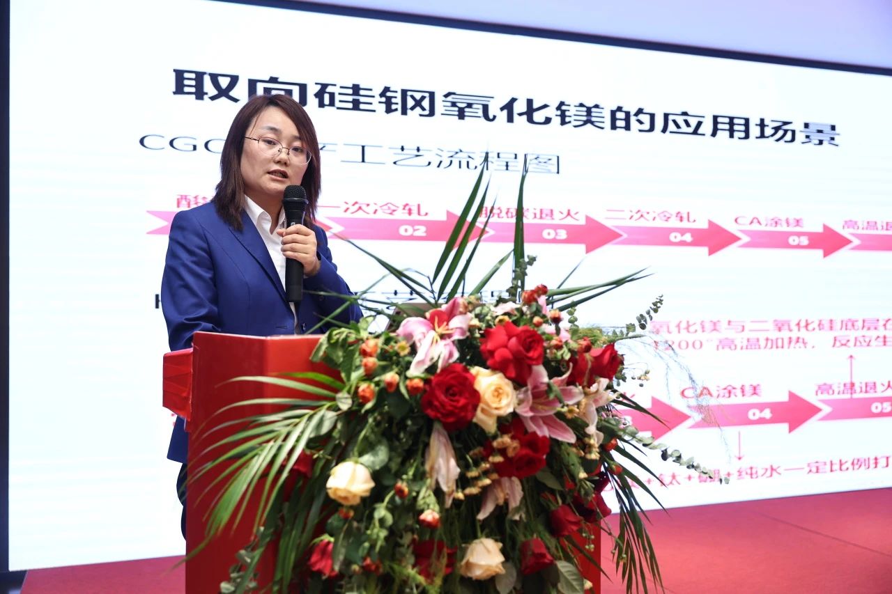 鎂神科技研發總監白雪梅女士以《取向硅鋼氧化鎂的應用技術及鎂神解決方案》為主題,詳細介紹了鎂神科技在高端氧化鎂材料上的研發成果及其在取向硅鋼中的應用。她重點展示了鎂神科技如何通過嚴格的工藝優化和質量控制,為客戶提供更具競爭力的產品解決方案。白總監強調,鎂神科技在推動氧化鎂行業國產替代進口方面取得了顯著進展,并將繼續以技術創新為核心,推動行業技術迭代升級,助力客戶提升產品競爭力。